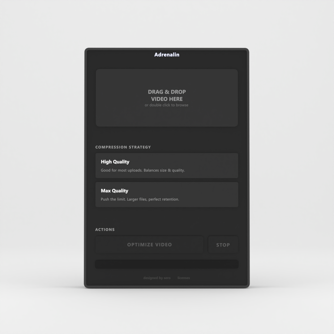 Adrenalin is a lightning-fast desktop app that optimizes your videos for TikTok, Reels, and Shorts - with smart compression that mimics the platform’s own pipeline. I built Adrenalin because I was tired of uploading clean edits that came out pixelated. Now you don’t need to guess the right export settings - just drop, click, and upload.